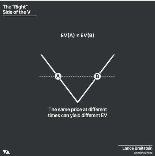 In summary, trading with this new turn or the right side of the V increases expected value because: