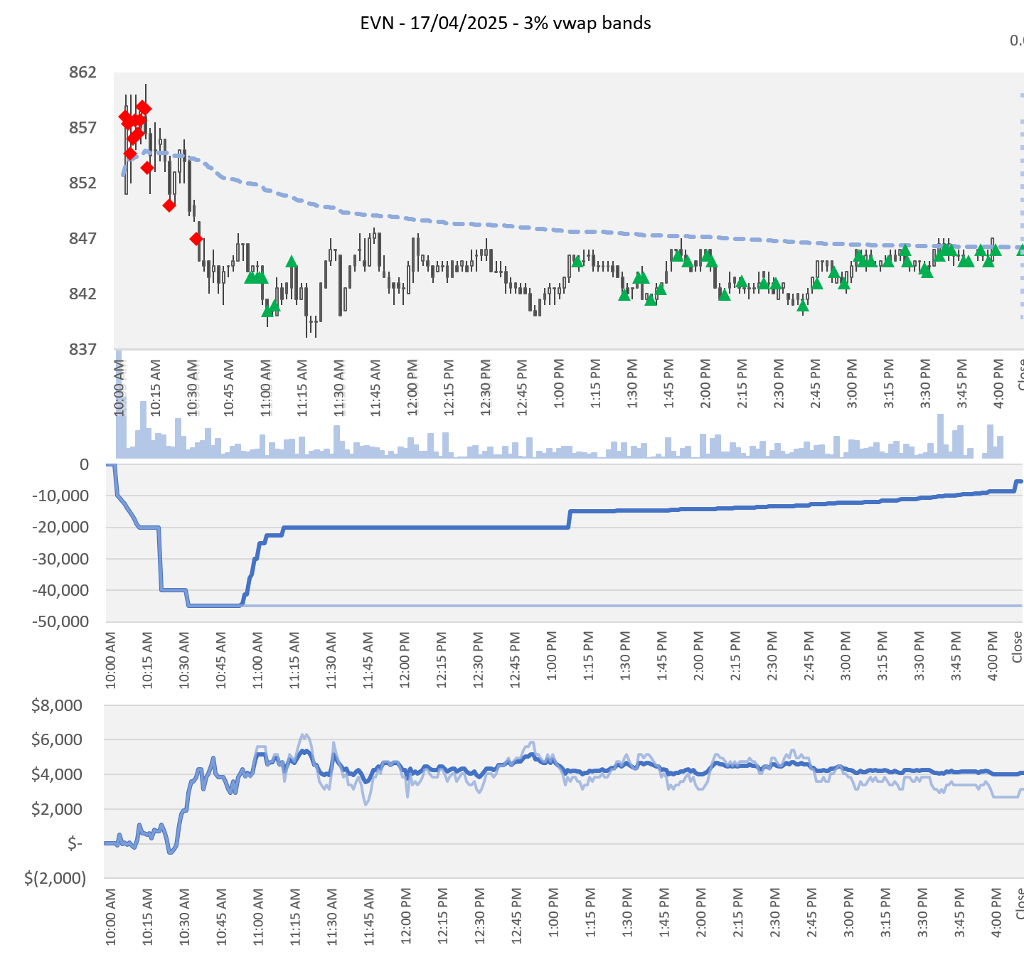 I vwap in 1/2 size and then double on the confirmed breakdown through 850. The see-it moment was the range breakdown at 10.30 am.